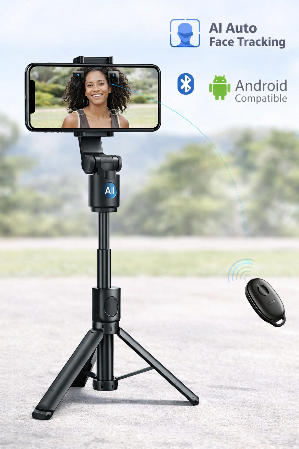 AI Face Tracking Selfie Stick with Tripod & Bluetooth Remote